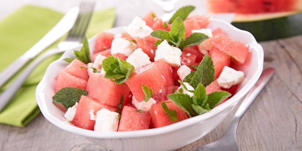 طريقة عمل سلطة بطيخ بالكزبرة والجبنة الزرقاء وصوص الليمون الحار
