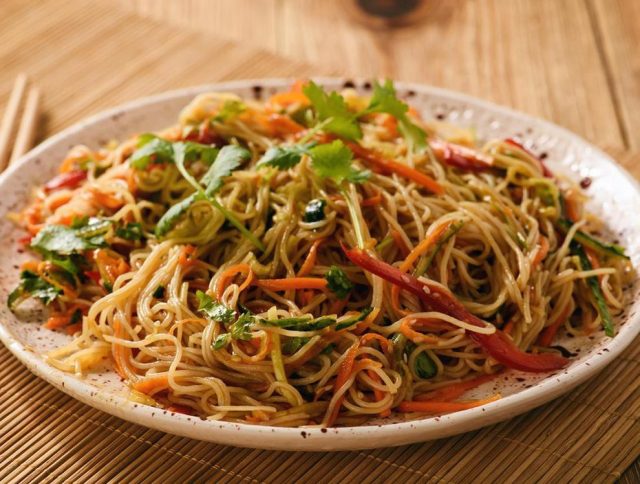 - اسلقي نودلز الأرز حسب التعليمات، ثم صفيها.