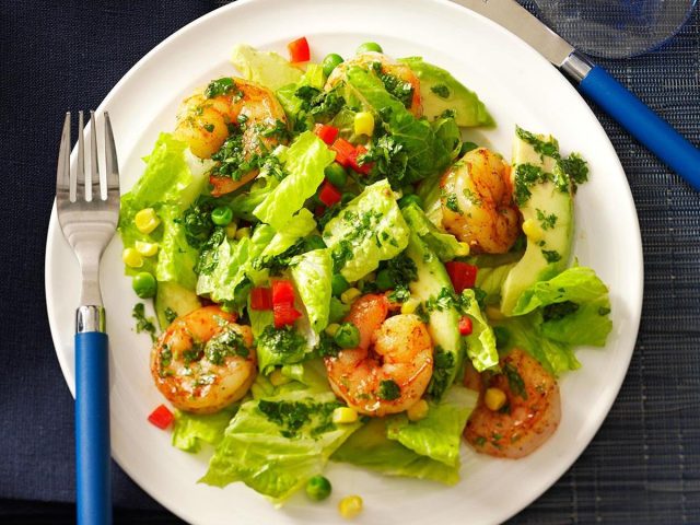 طريقة عمل سلطة الروبيان مع الخضر الطازجة